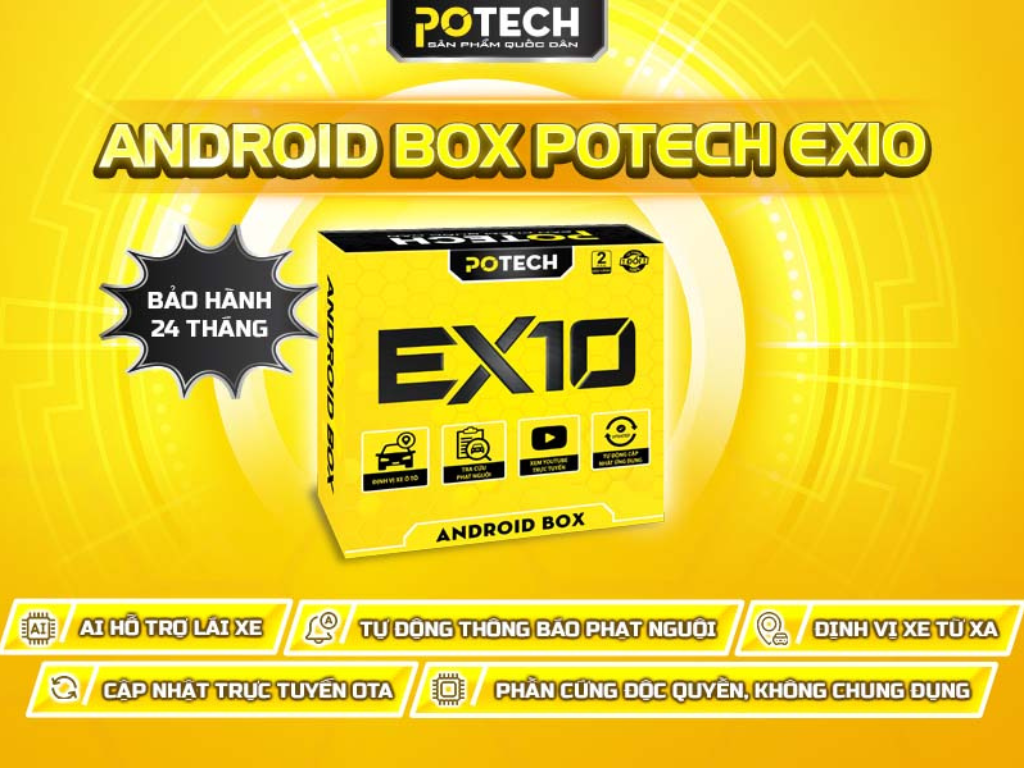 Android Box Potech EX10 là giải pháp nâng cấp màn hình zin dành cho xe đã có Apple CarPlay/Android Auto, giúp biến màn hình nguyên bản thành hệ điều hành Android thông minh chỉ với thao tác cắm USB đơn giản. Đây là mẫu Android Box cao cấp nhất của Potech hiện nay, nổi bật với cấu hình mạnh, bộ nhớ lớn, AI hỗ trợ lái xe và hàng loạt tiện ích thông minh dành cho chủ xe hiện đại.
